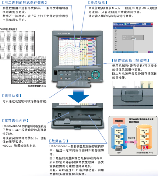 高可靠性、高品質(zhì)是YOKOGAWA的DXA。 DXAdvanced 的安全測量用以保護(hù)重要數(shù)據(jù),并且可以限制訪問系統(tǒng)的用戶權(quán)限。