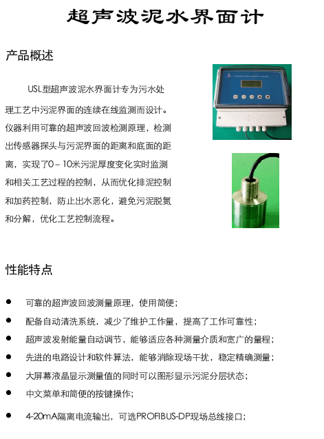 超聲波污泥界面儀JKUSL系列性能特點(diǎn): | |