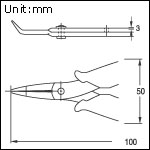 . 全長: 100mm. 前端無牙圓嘴,適合彎曲作業(yè)不傷表面