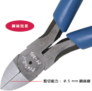 8PK-905, 鉻釩鋼強(qiáng)力斜口鉗(125mm) [精密剪鉗類(lèi)]. 全長(zhǎng): 125mm. 采用特殊高碳鋼鍛造, 表面磷酸鹽處理. 適合剪切印表機(jī)打印針等高硬度線(xiàn)材