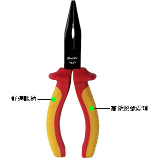 PM-919, VDE 1000V 尖嘴鉗(160mm) [電工剪鉗類]特點(diǎn):. 通過德國VDE和GS品質(zhì)認(rèn)證,符合IEC60900耐高壓1000V安全規(guī)范。. 人體工學(xué)雙色手柄,膠柄采用耐高壓、耐凍、耐燃材質(zhì)制造。. 本體采用鉻釩鋼打造,嘴尖前牙后平,適夾物、整腳、剪線。. 刀口經(jīng)特殊硬化處理,可剪1.6mm硬質(zhì)鐵線。