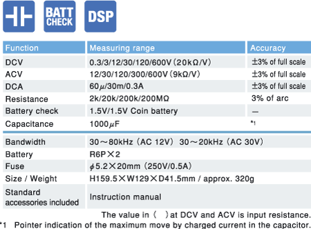 * 能以低電壓(3V)檢測高達200MΩ的電阻