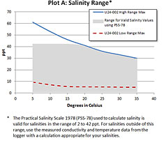 HOBOware Pro軟件允許開始/結(jié)束點校準以補償任何污垢,并提供易于轉(zhuǎn)換為特定的電導(dǎo),鹽度使用實用鹽標1978( PSS- 78 )
